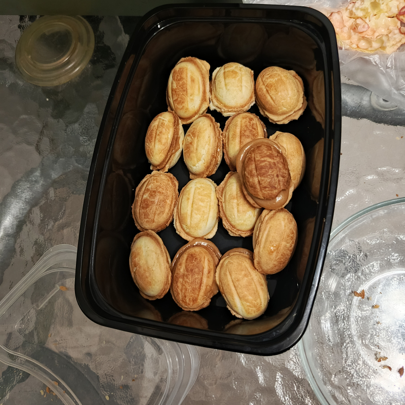 У меня получилось 35 орешков по этой раскладке. А крем ещё 100 гр остался. Но это от модели мультипекаря зависит. И для скорлупки мне нужно было 6 гр теста