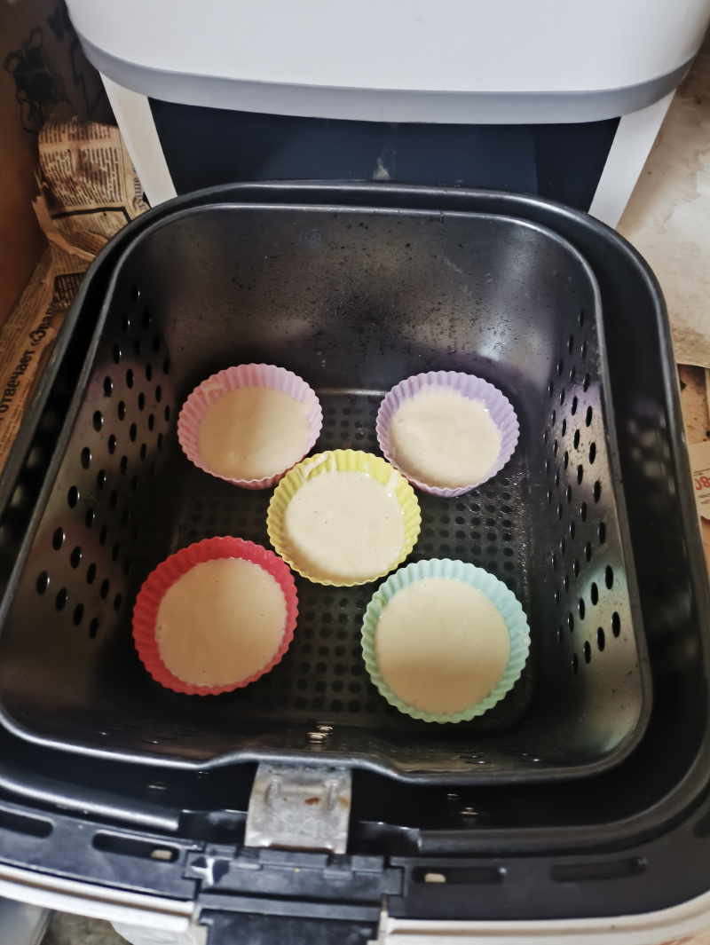 За последний год ударился в готовку в аэрогриле. Пробую всё, что можно сделать в нём. Типа хобби такое. Делал уже несколько видов кексов, тортиков, запеканок, хлеб. Искал подобный рецепт на новые кексы. Выбрал этот. Очень понравилось. Указанного объёма продуктов хватает на 9 шт. Так как мне понравилось и люблю угощать коллег на работе, тут же сделал повторную партию.