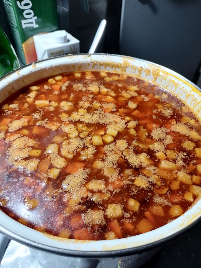 Фотоотзыв по рецепту: Сборная мясная солянка в казане на костре