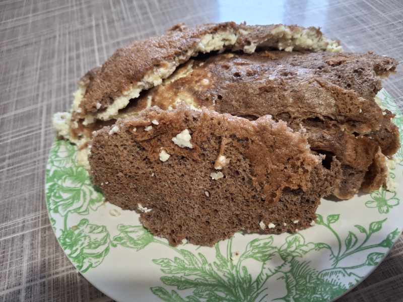Просто перевод продуктрв и времени. Лучше бы отдельно сырники испекла и отдельно бисквит. Вы бы хоть пояснили зачем здесь столько воды? Обычно на 5 яиц идет 160 г муки, а тут вполовину муки меньшн, а еще сверху 2 ст ложки воды.
