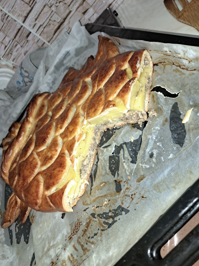 Фотоотзыв по рецепту: Пирог с рыбными консервами и картошкой