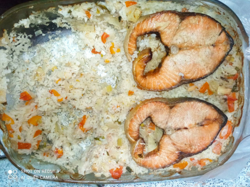 Фотоотзыв по рецепту: Кета с рисом в духовке