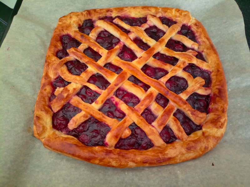 Пирог с вишней из слоеного теста