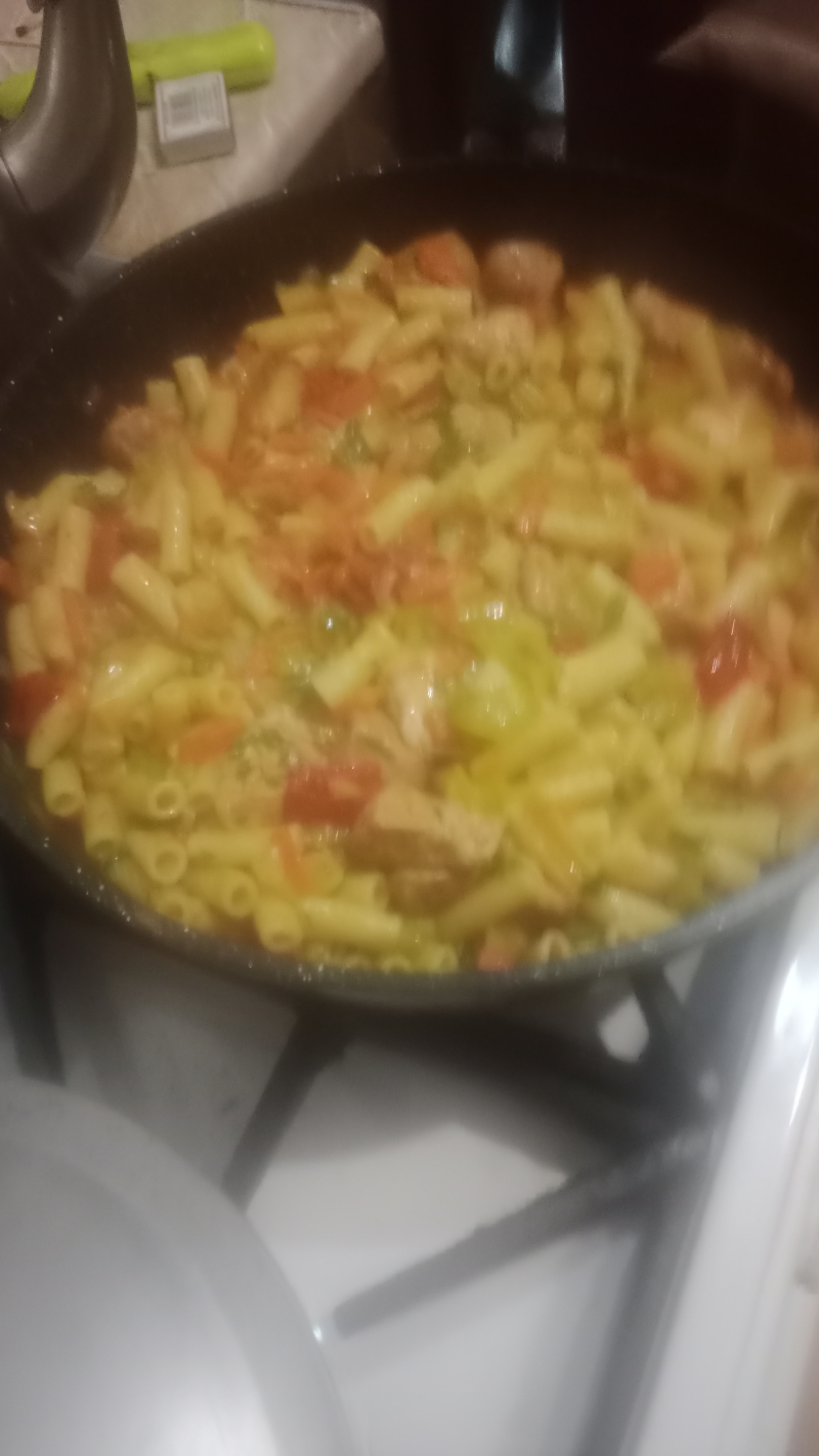 Фотоотзыв по рецепту: Макароны с курицей и овощами на сковороде