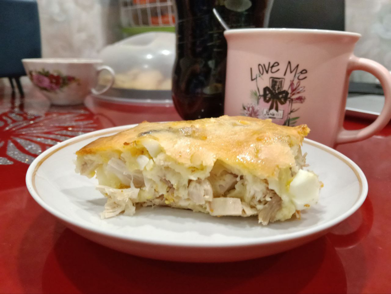 Фотоотзыв по рецепту: Заливной пирог с курицей и яйцом