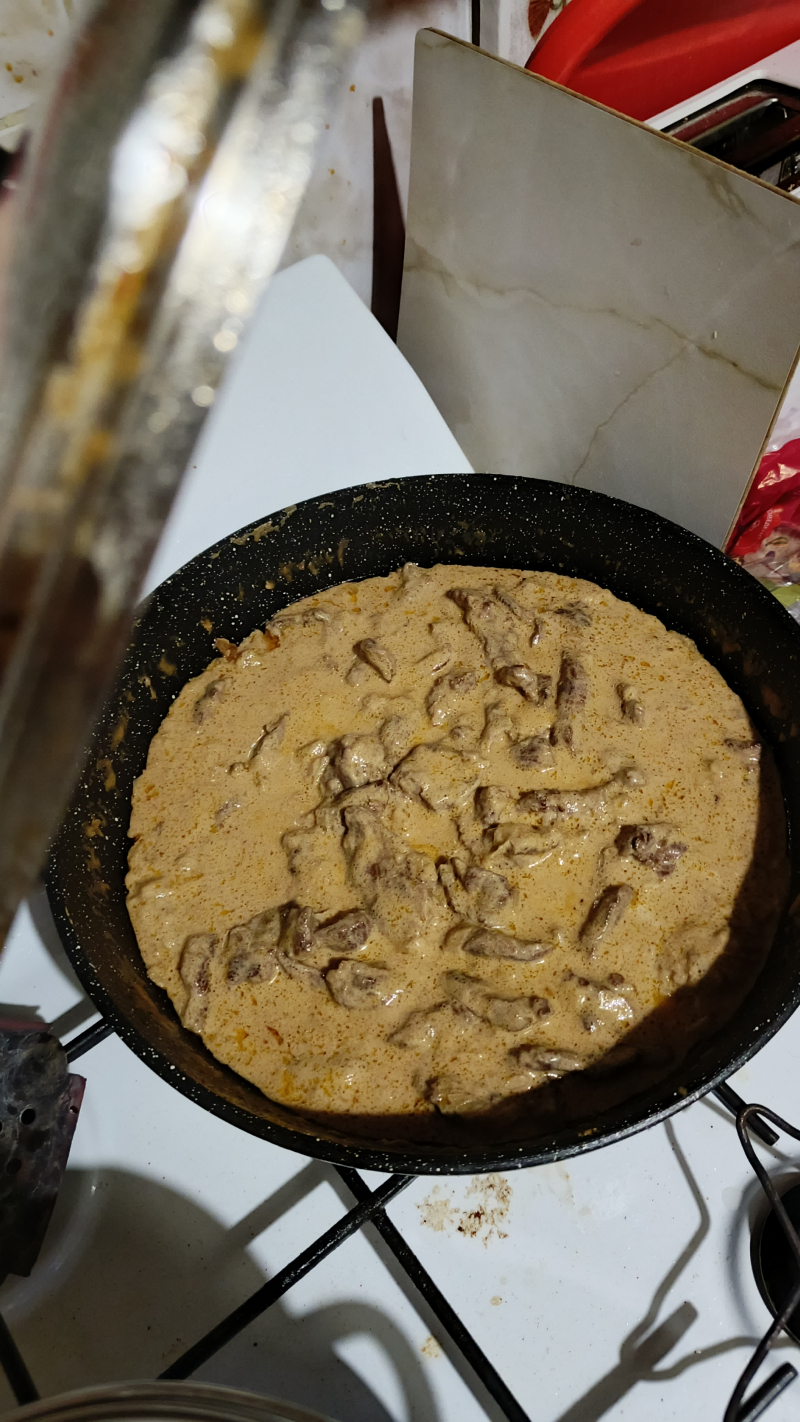 Случайно ко мне попал кусок телятины, вырезки и долго думала что с ней делать, выбрала ваш рецепт. Почитав комментарии, увидев что может быть кисловатый вкус от сметаны, решила взять сливки 20% и сметану 20% (больше жирность - менее кислое). За неимением соуса томатного и мускатного ореха и купить не получилось, под руку попался самый простой кетчуп томатный, в котором из специй был мускат и ещё что-то. Подошёл идеально. Делала без муки и даже пришлось разбавлять, я не ярый поклонник разбавлять водой, если готовлю со сливками и использую ввместо воды молоко. Получилось очень вкусно, мясо просто тает во рту. Спасибо за рецепт, переживала, что испорчу мясо, а получилось вкуснее чем ожидала) Фотоотзыв #14107 по рецепту: Бефстроганов из телятины