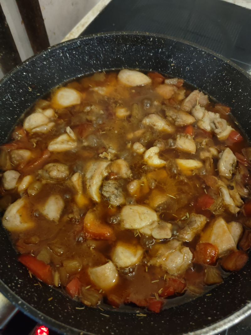 Хочу долавить на мой вкус. Чтоб курица не была пресной, я солю и перчю перед жаркой. И если не хватает кислоты я добавила томатную пасту. А так все класс!