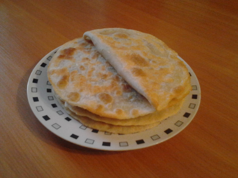 Вкусные лепешки! Получилось три с половиной штуки. Мне понравилось их готовить, очень мягкое, нежное тесто.