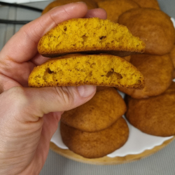 Нашёл этот рецепт, тыквенного пюре вышло 1 кг, взял и остальных ингредиентов пропорционально, готовилось не просто, так как раньше ничего не пёк) Но в итоге вышли вот такие не очень красивые, но очень вкусные печеньки)) Автору большое спасибо за хороший и понятный рецепт!))