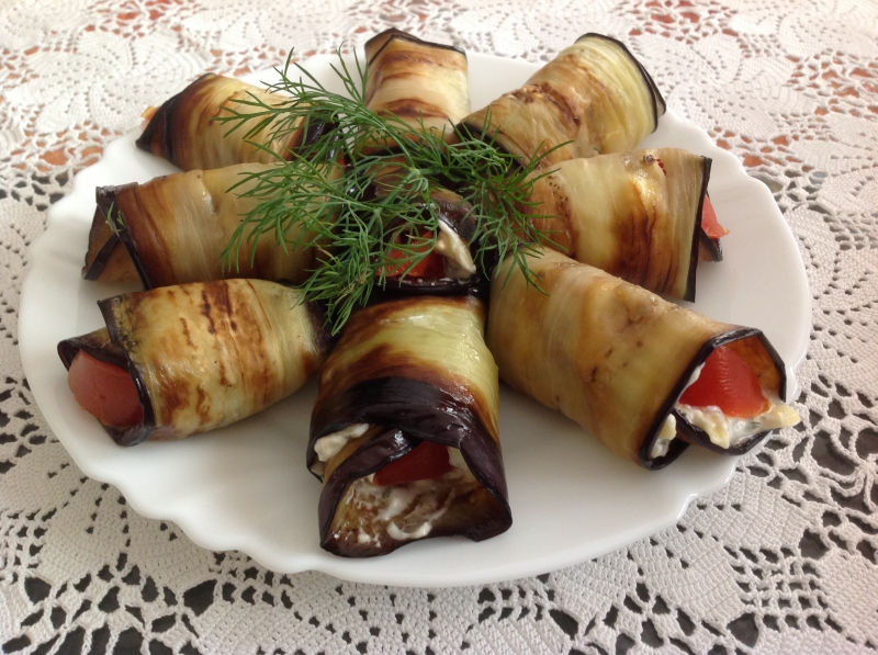 Фотоотзыв по рецепту: Рулетики из баклажанов с помидорами и сыром Фета