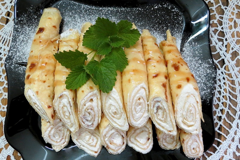 А это блинчики с кремом творожным с желатином. Я в восторге!