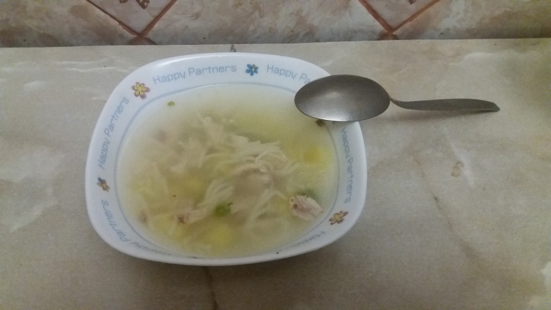 Фотоотзыв по рецепту: Куриный суп с макаронами и зелёным горошком