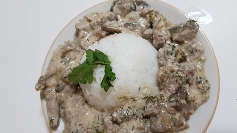 Бефстроганов из говядины с грибами