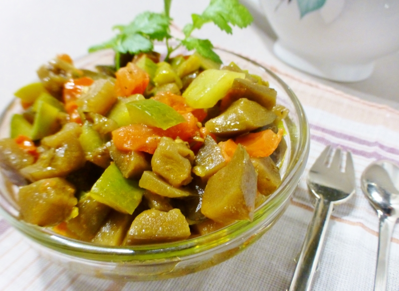 Кабачки с баклажанами, помидорами и перцем мне нравятся в пост. Кстати, у индусов в Малайзии я пробовала похожие, они их так и называют - "вареные".