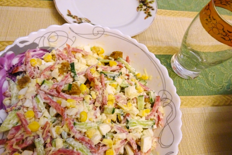 Фотоотзыв #470 по рецепту: Салат с колбасой и сухариками