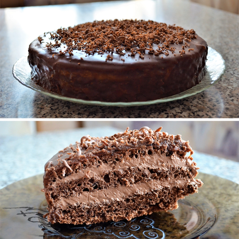 Коржи вышли в меру влажные, и очень шоколадные, все домашние довольны экспериментом! Фотоотзыв #4707 по рецепту: Торт «Пражский»
