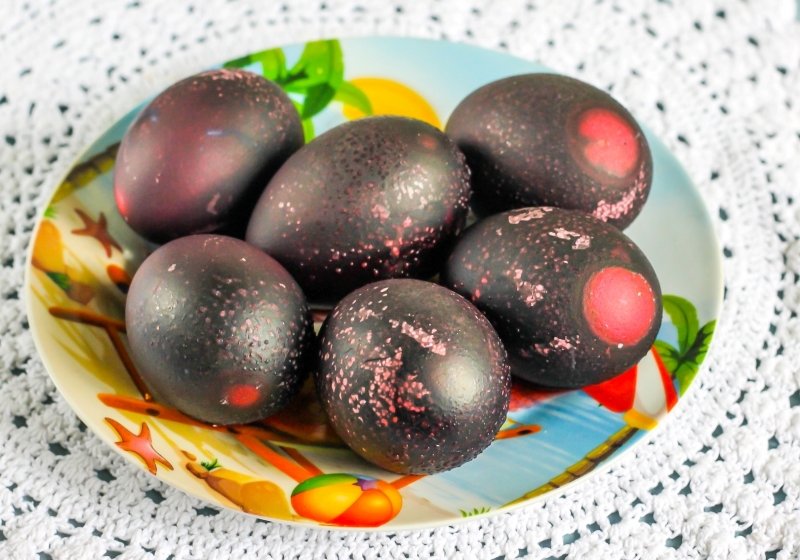 У меня качественный египетский каркаде и яйца получились бордовыми))))