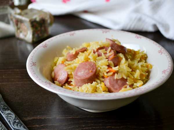 Орзо с сосисками
