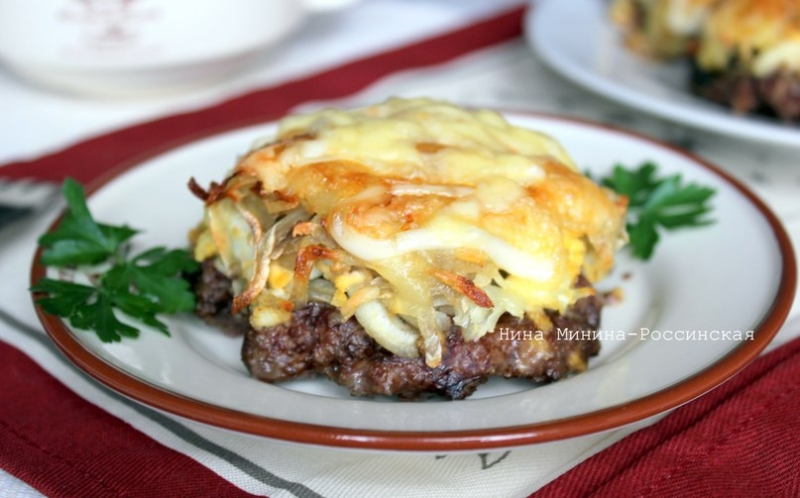 «Стожки» из фарша, яиц, картофеля и сыра (в духовке)