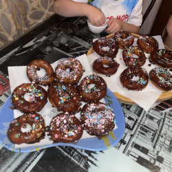 Тесто получилось жидковатое немного и я добавила ещё 0.5 стакана муки. Возможно и не нужно было. Ну в целом получились очень вкусные пончики, хоть и малость плотноватые. Домочадцы съели за один день!!!