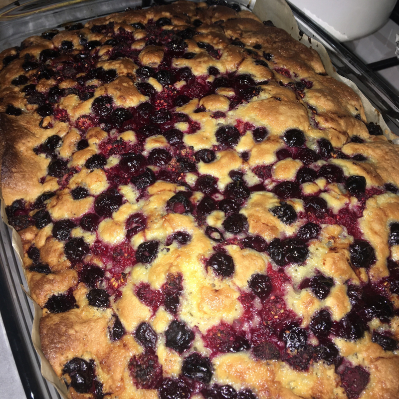Сразу скажу, что оригинальный рецепт я немного модифицировала под себя из-за большего размера формы, что использовалась на сайте. Фотоотзыв #6229 по рецепту: Песочный пирог с ягодами и сметанной заливкой
