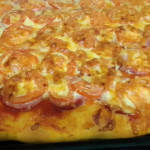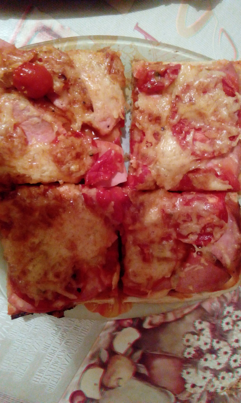 Фотоотзыв по рецепту: Пицца с колбасой, сыром и помидорами