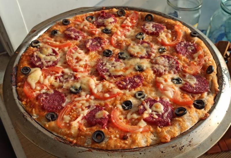 Фотоотзыв по рецепту: Пицца с моцареллой и колбасой