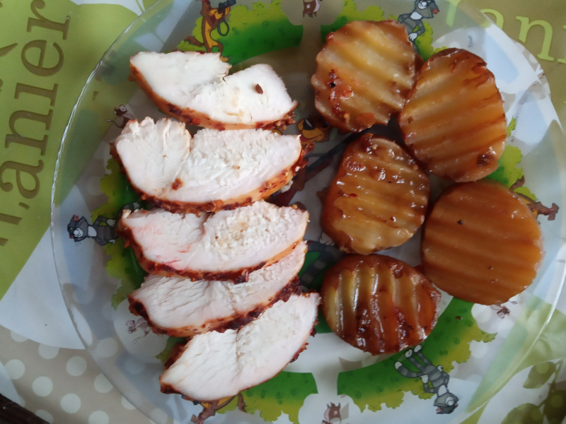 Отличный рецепт. Низкокалорийно и полезно и главное вкусно! Цвет картофеля такой от соевого соуса вышел.
