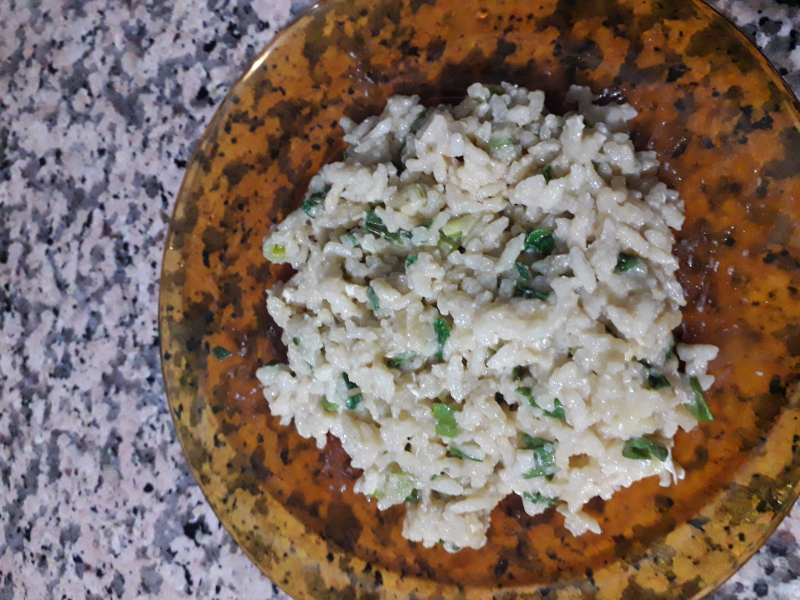 Для данного рецепта дома было все кроме горошка,но по скольку он не главный ингредиент, я решила все же приготовить рис с яйцом по китайски .Лук использовала обычный зелёный. Это оочень вкусно , похоже чем то на ризотто , муж сказал,что может есть без всего отдельным блюдом )