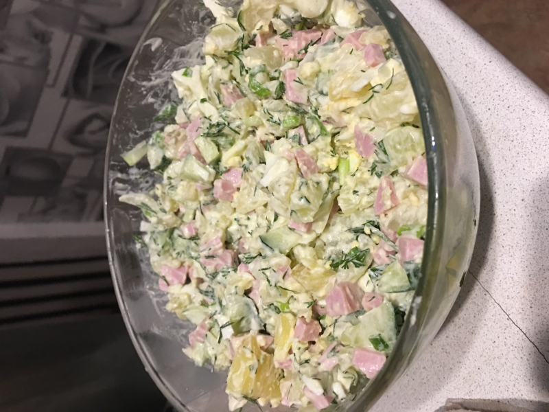 Приготовила салат «Окрошка», получился нежный и вкусный! И кстати, не требует много времени для приготовления! Ничего лишнего в составе, все ингредиенты хорошо сочетаются. Моя семья довольна!