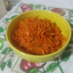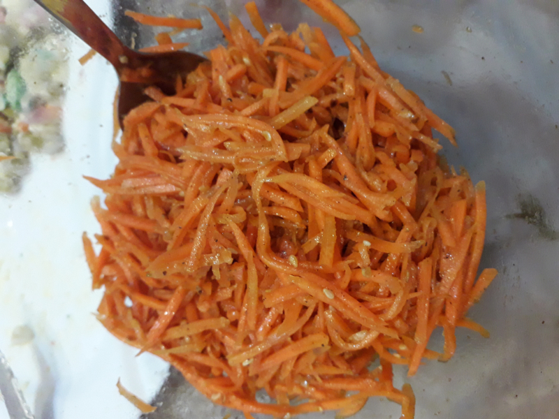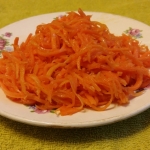 Морковь по корейски удалась,гостям очень понравилась, но на мой вкус многовато сахара, в следующий раз буду делать с солью 1:1.К готовому блюду, я еще добавила обжаренный кунжут,чтобы придать более китайский вкус))