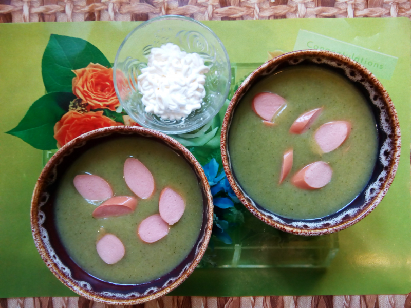 Мой муж не особо любит брокколи. Нашла этот интересный супчик, только решила сосиской "украсить" его. Муж был доволен. Сказал, что так брокколи можно кушать. Благодарю за рецептик.