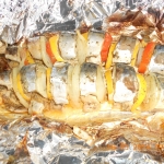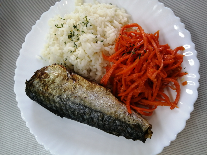 У меня скумбрия запечённая в духовке получилась вкусная. От рецепта я чуть отошла. Во-первых, была половина лимона давнишнего, уже подвявшего сильно, поэтому рыбку я только сбрызнула соком. Ни солила, ни перчила. Это на любителя. Голову выбрасила, ну не могу я, когда она в глаза смотрит... Во-вторых, фольга у меня закончилась... Пришлось открытым способом запекать. Скумбрия - рыба сама по себе суховатая, поэтому сочности, как бы вы ее не готовили, особо не ждите. Зато аромат на всю квартиру. Вкусно и красиво получилось