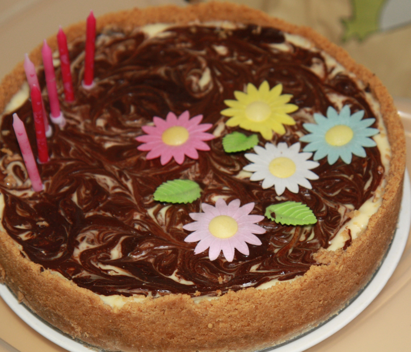 Рецепт хороший, не очень сложный. Дети у меня очень любят шоколад, поэтому я по верху добавила растопленный на водяной бане молочный шоколад и деревянной шпажкой сделала узоры. Вышло вкусно.