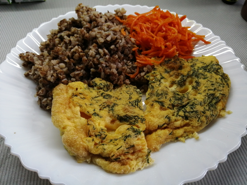 Запекла омлет в духовке на четырех яйцах. Получилась красивая корочка.