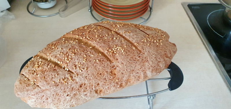 Сегодня выбрала этот рецепт для выпекания. Добавила чуть больше воды, т.к. тесто сначала было очень плотным. Сверху посыпала кунжутом. Всё получилось замечательно. Корочка очень хрустящая, приятный аромат, отличный вкус. Хлебушек внутри мелкопористый. Очень вкусный. Благодарю за рецепт!...