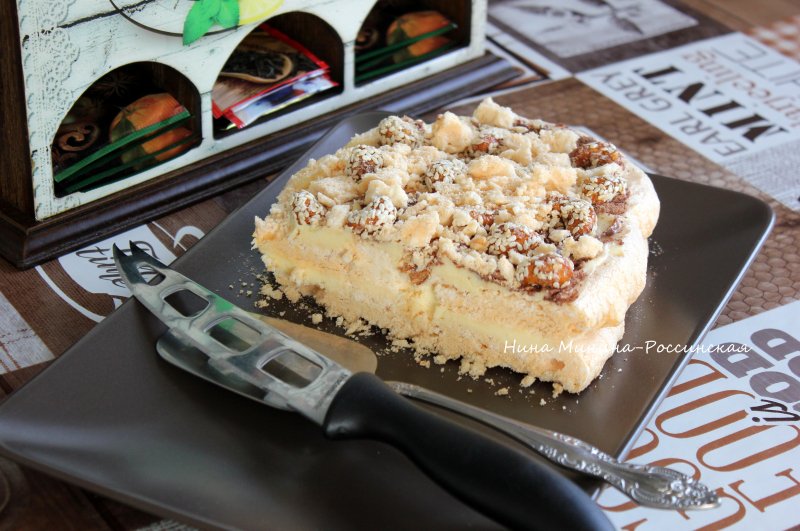 Вместо шоколадного крема поверхность торта можно оформить просто сладким порошком какао. Если не добавляли орехи в коржи, то уложите их между коржами или сверху на торт (тут кешью в кунжуте). Фотоотзыв #7557 по рецепту: Торт «Полет» с кремом из сгущенки