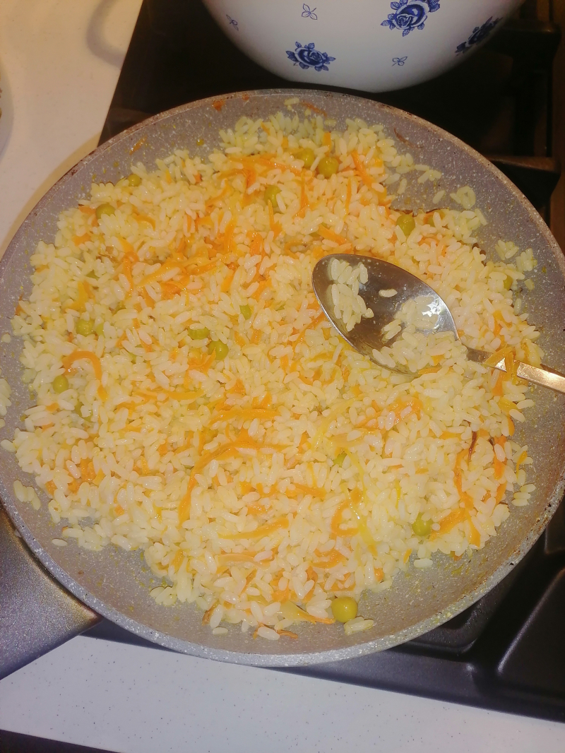 Фотоотзыв по рецепту: Рис с консервированным зелёным горошком