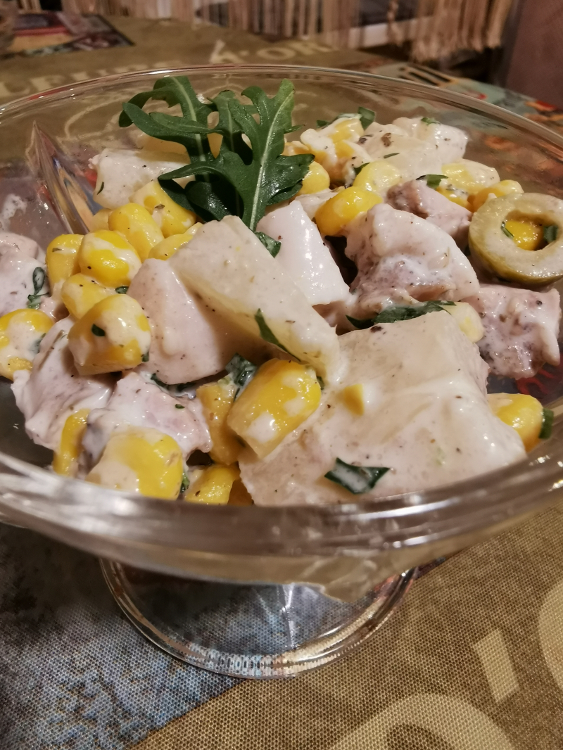 Фотоотзыв по рецепту: Салат с бужениной, кукурузой, ананасом и оливками