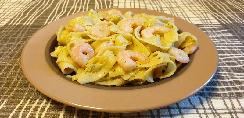 Фотоотзыв по рецепту: Фетучини с песто и креветками