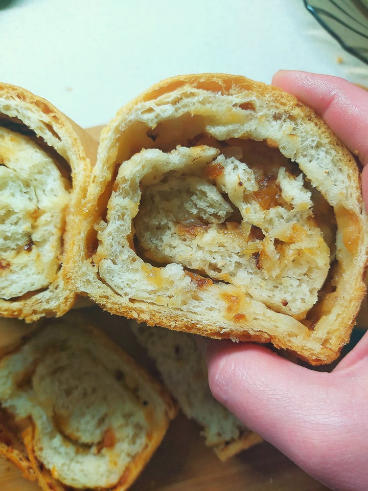 Спасибо за рецептик, я получилЬ кулинарный ...)))) отвал башки, это просто невероятно!))) Пористый мягкий хлебушОк сл сладкой луковой начинкой, м-м-м-м!))))
