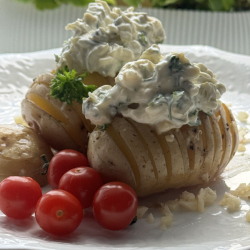 Огромное спасибо за рецепт, уже раза три по нему готовила, каждый раз очень эффектно и вкусно. Первые два раза брала мытую молодую картошку и не чистила, а сегодня сделала чищенную, получилось лучше! Масло, сыр и специи не скатывались, а пропитывали картофель, и запекся он быстрее, был мягче.