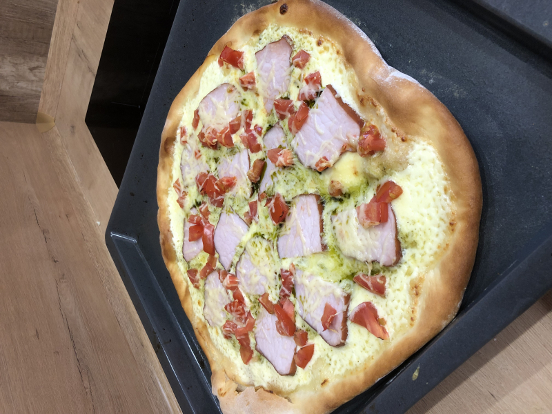 Добавила основой для пиццы с песто