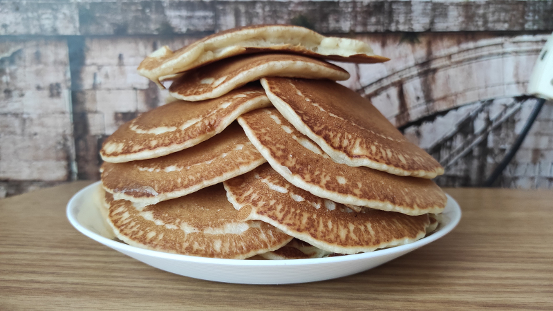 Часто готовлю панкейки. Т.к. очень быстро и вкусно. Обычно всё перемешиваю обычным венчиком, в этот раз решила взять электровенчик. Получились пышнюшки.