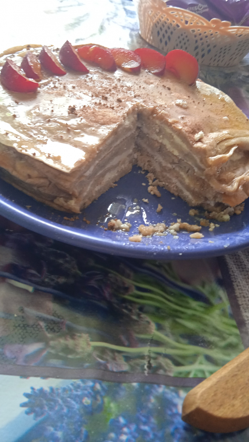 Не смотря на то, что я добавляла всё на глаз (весов нет) и не пользовалась блендером, тортик, как я и сказала прекрасен! Крема ПО МОЕЙ ВИНЕ получились маловато