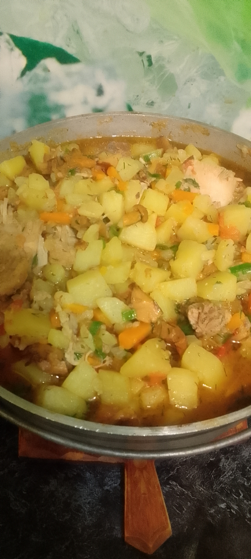 Фотоотзыв по рецепту: Филе куриных бедер с лисичками и овощами в казане